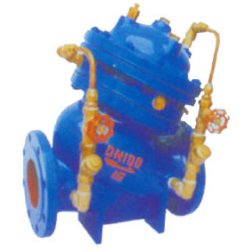 多功能水泵控制閥停機時,閥門進口的壓力降低,當(dāng)接近零流量時,主閥板在自身重力作用下迅速關(guān)閉。因閥門進口端壓力降低,閥門出口端的壓力水通過連接管進入膜片控制器上腔,下腔水通過閥門進口端的連接管壓回至閥門進 口端,緩閉閥板緩慢關(guān)閉,慢關(guān)時間可通過控制閥進行調(diào)節(jié)。